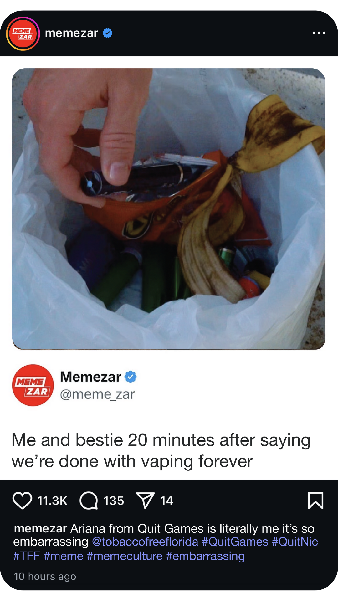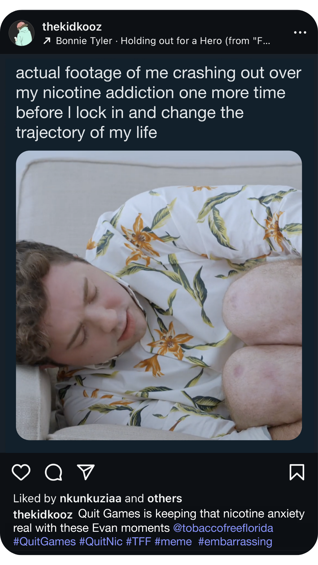 We’ll amp up the Quit Games conversation by sharing static content of our most memeable, repostable, and gag-worthy moments on Snapchat and Instagram. We’ll dive deeper into the withdrawal struggles of our characters, highlighting their most embarrassing moments.